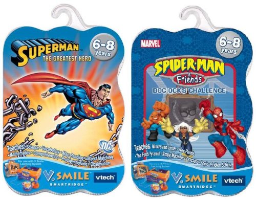 Vsmile Game Bundle - Greatest Superheroes Age Group: 6+ Years The Vsmile Greatest Superheroes game cartridge bundle consists of the following Vsmile titles: Spiderman & Friends: Dock Ock's Challenge, and Superman. This bundle of games would normally sell for .99, but is now available at a significant discount! Perfect for any young boy eager to learn, this bundle of V Smile Greatest Superheroes games provides hours of thrilling educational gameplay.